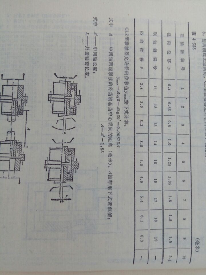 6.當(dāng)兩軸中心線無徑向位移時(shí),兩鏈接軸的不同軸度所引起的每一外齒軸套線對(duì)內(nèi)齒圈軸線的歪斜不應(yīng)大于30.